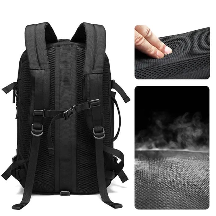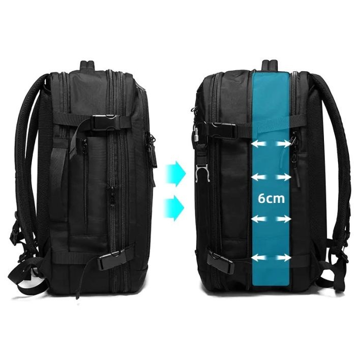 Sac à Dos BANGE BG017 Pour Pc Portable 17.3″ – Matériau: Tissu Oxford / Texture doublure polyester – Volume extensible: 40 à 52 Litres – Fermetures éclair renforcées – Compartiment indépendant rembourré pour ordinateur portable 17.3″ et tablette 12.9″ – Des poches pour Organisation intelligent – Conception convertible en valise – Poignée latérale – Bretelles dissimulables – Ouverture large à 180°- Cadenas antivol approuvée par la TSA – Mousqueton porte-bouteille – Housse étanche – Revêtement enduit TPU durable et résistant aux intempéries – Forte résistance à l’usure et aux coupures – Poids: 1.75 kg – Dimensions: 55 x 35 x 21/27 cm – Couleur: Noir.