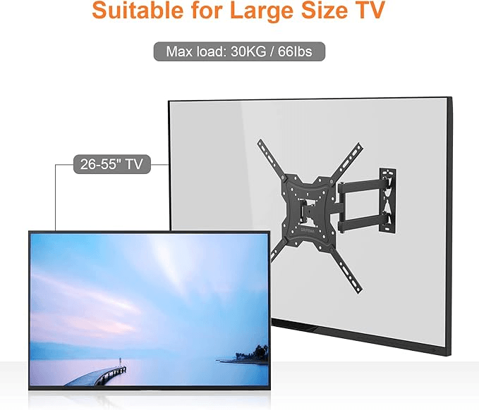 ROBUSTE STABLE- Bras television mural est fabriqué à partir de matériaux en acier épaissi de haute qualité. Solide et durable, forte capacité de charge (max 30 kg)